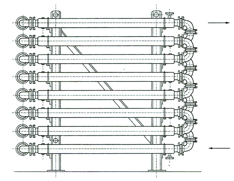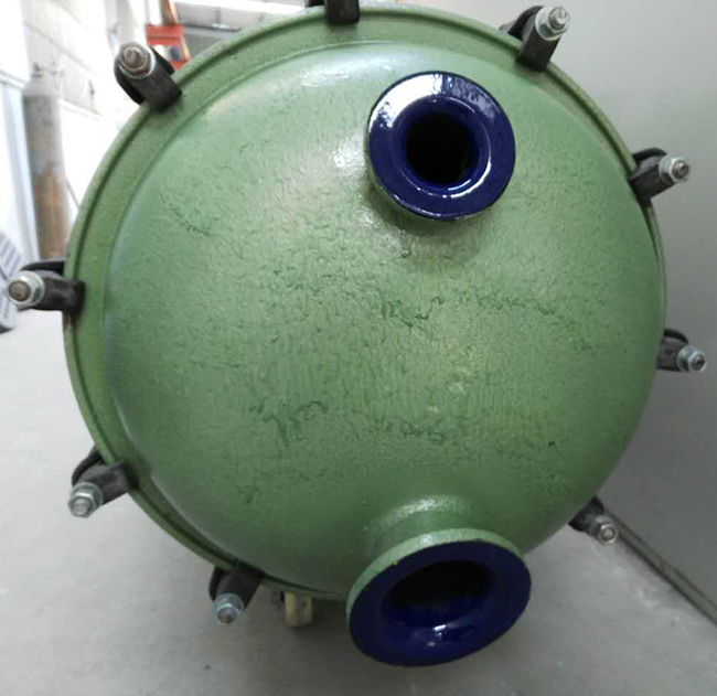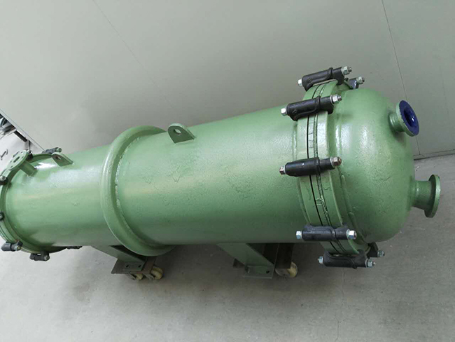 通過本實(shí)用新型得到的搪玻璃套管式混合機(jī),其有益效果是:采用套管式的換熱管,搪玻璃可直接涂覆在外管的外表面,工業(yè)操作方便,成品率高,加入中間隔板后免去了在下管板上涂覆搪玻璃,筒體外壁上的空腔室可加入冷卻液,大大提高了換熱器的熱交換面積,提高了換熱效率。